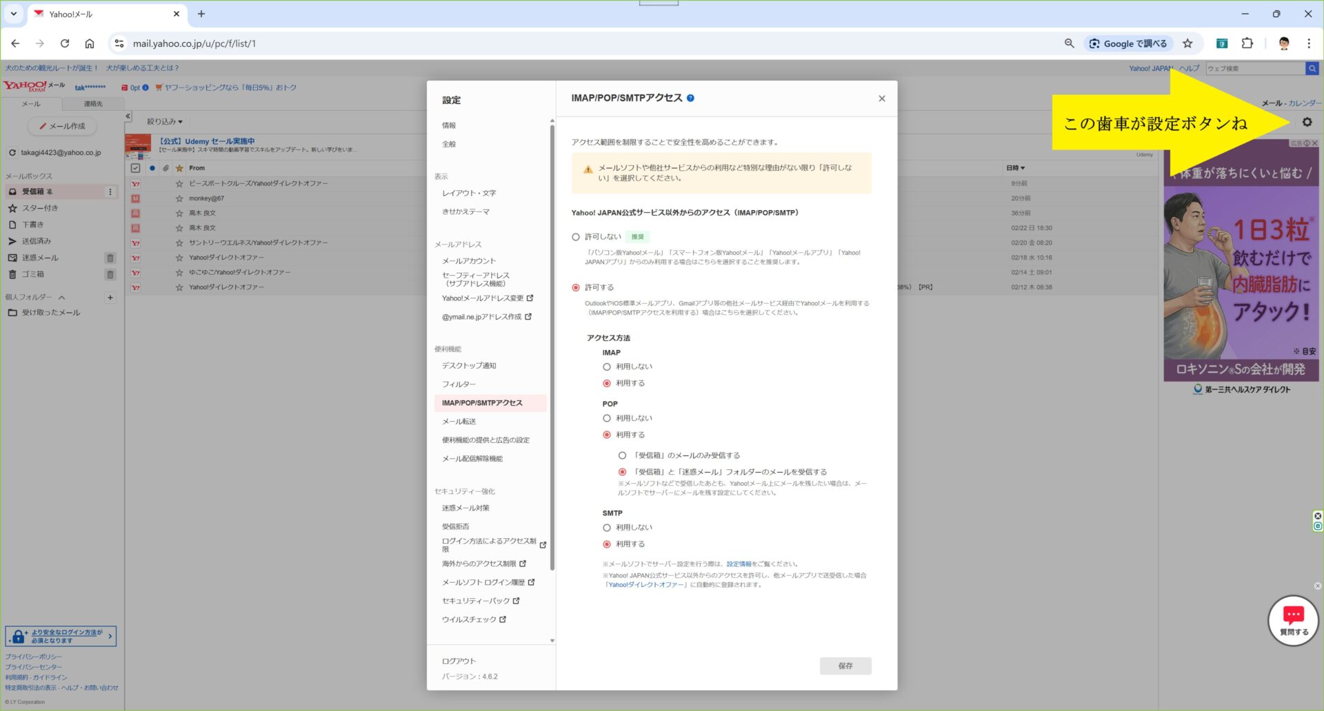 事前準備:Yahoo!メール設定の確認