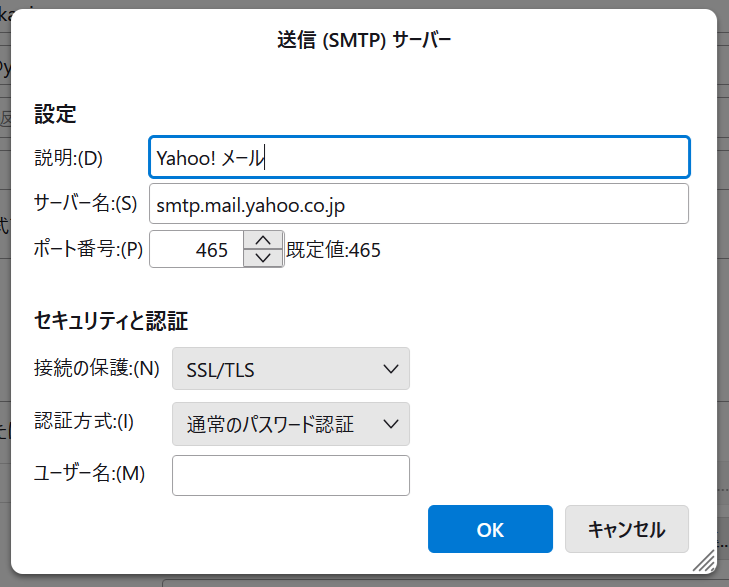 注:一般的にはsmtp.mail.yahoo.co.jpとポート587(STARTTLS)またはポート465(SSL/TLS)が使用されます。